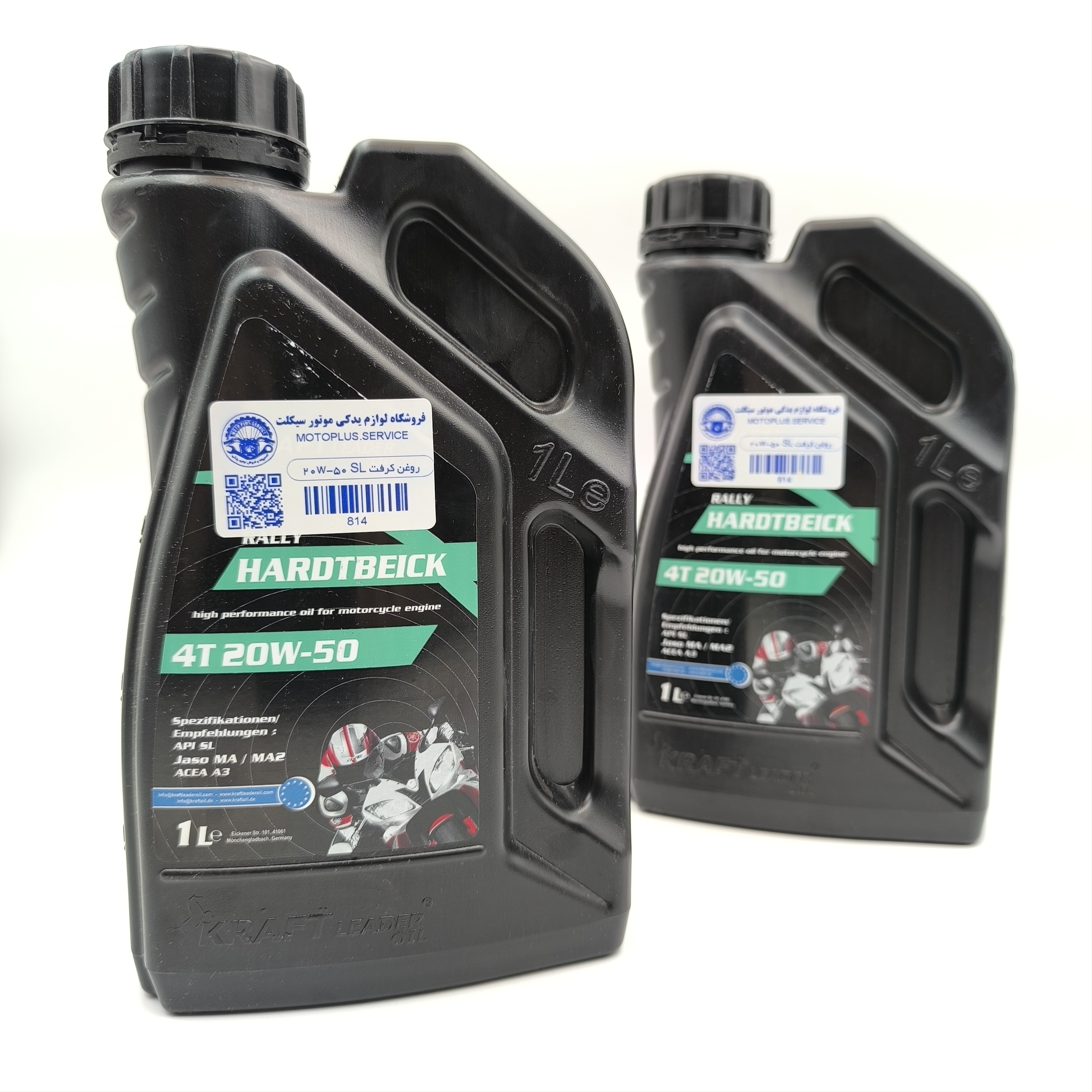 روغن موتورسیکلت کرفت Rally HARDTBEICK 20W-50 یک روغن با فرمولاسیون ویژه برای پیشرانه های موتورسیکلت 4 زمانه در شرایط کاری (ترافیک شهری ) است. این محصول تحت لیسانس برند مادر یعنی کرفت آلمان تولید می شود.این محصول مناسب برای موتورسیکلت های کار مانند: هوندا 125،150،200 CG/CDI است. مزایا: جلوگیری از سایش قطعات داخلی خاصیت رسوب زدایی و پاک کنندگی عالی کاهش مصرف سوخت کاهش صدای پیشرانه