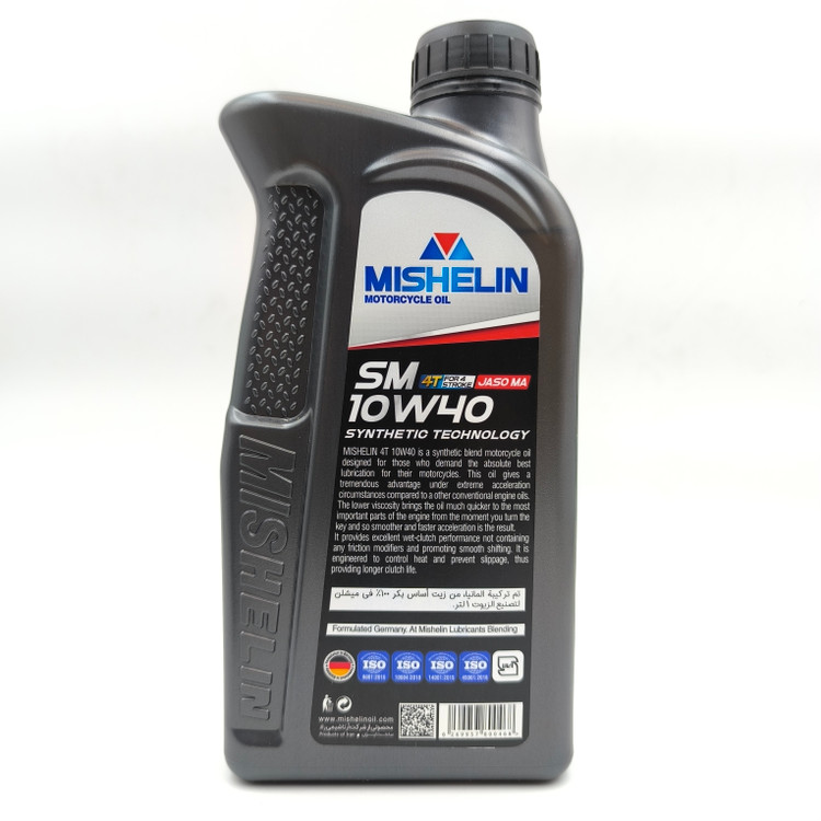 این روغن با گرانروی 10W40، ترکیبی از روغن پایه مرغوب و مواد افزودنی با کیفیت ساخت آلمان داره و مطابق با استانداردهای معتبر API SM و JASO MA ساخته شده.